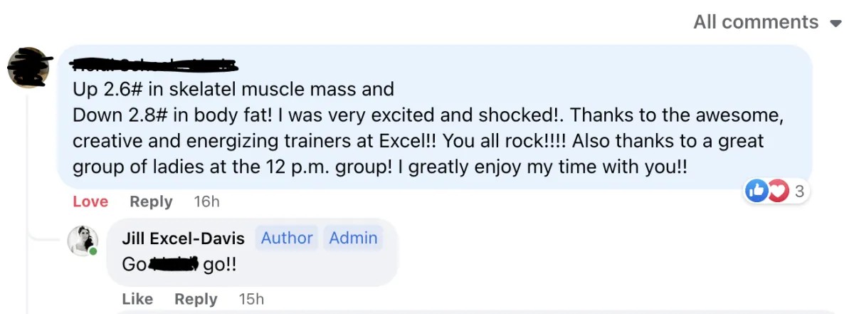 She lost 1 inch of FAT off her Belly and a total of 3% Body Fat so far!