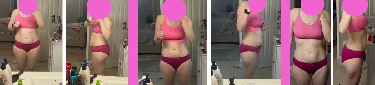 She gained muscle and lost 4lbs just from her mid-section, as a busy working mom of a 2 year old.